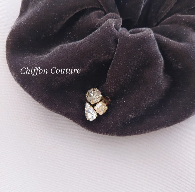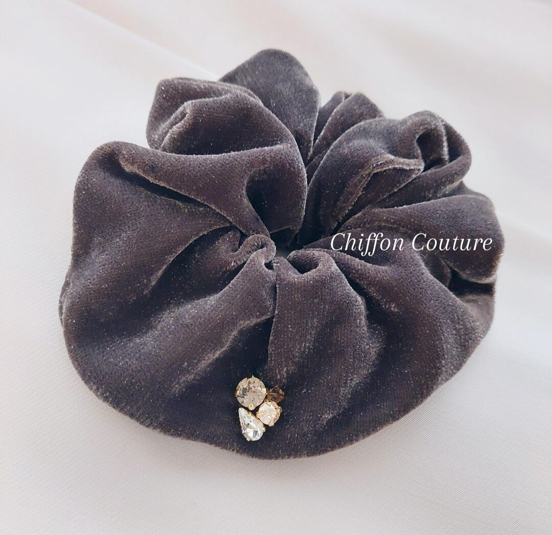 スワロフスキー製クリスタルのワンポイントでエレガントで可愛いシュシュに仕上げました。