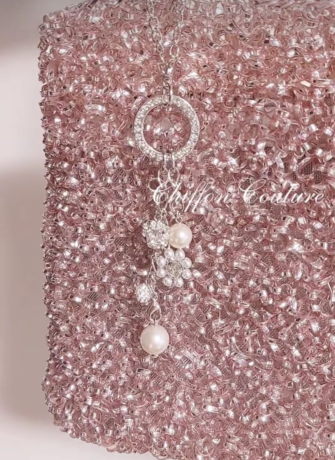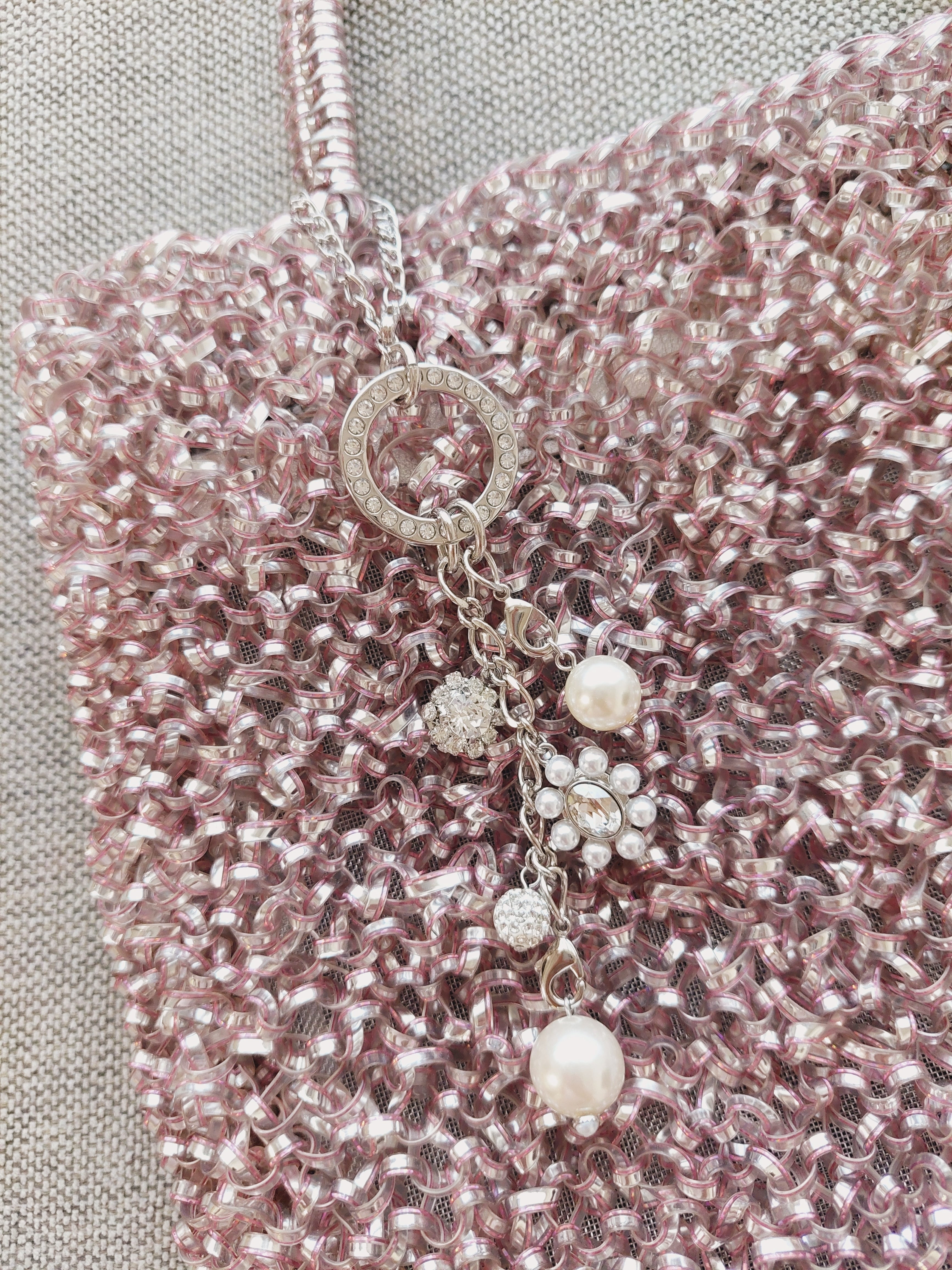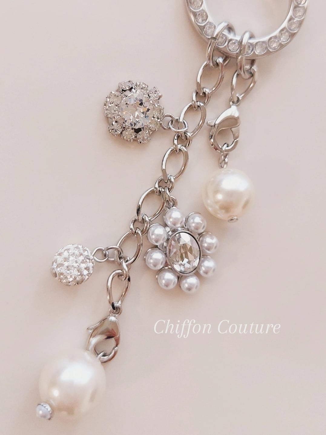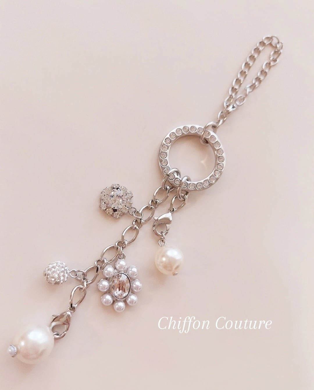 スワロフスキー製クリスタルを使用したクリスタルモチーフやパールモチーフを組み合わせた大人可愛いバッグチャームです。