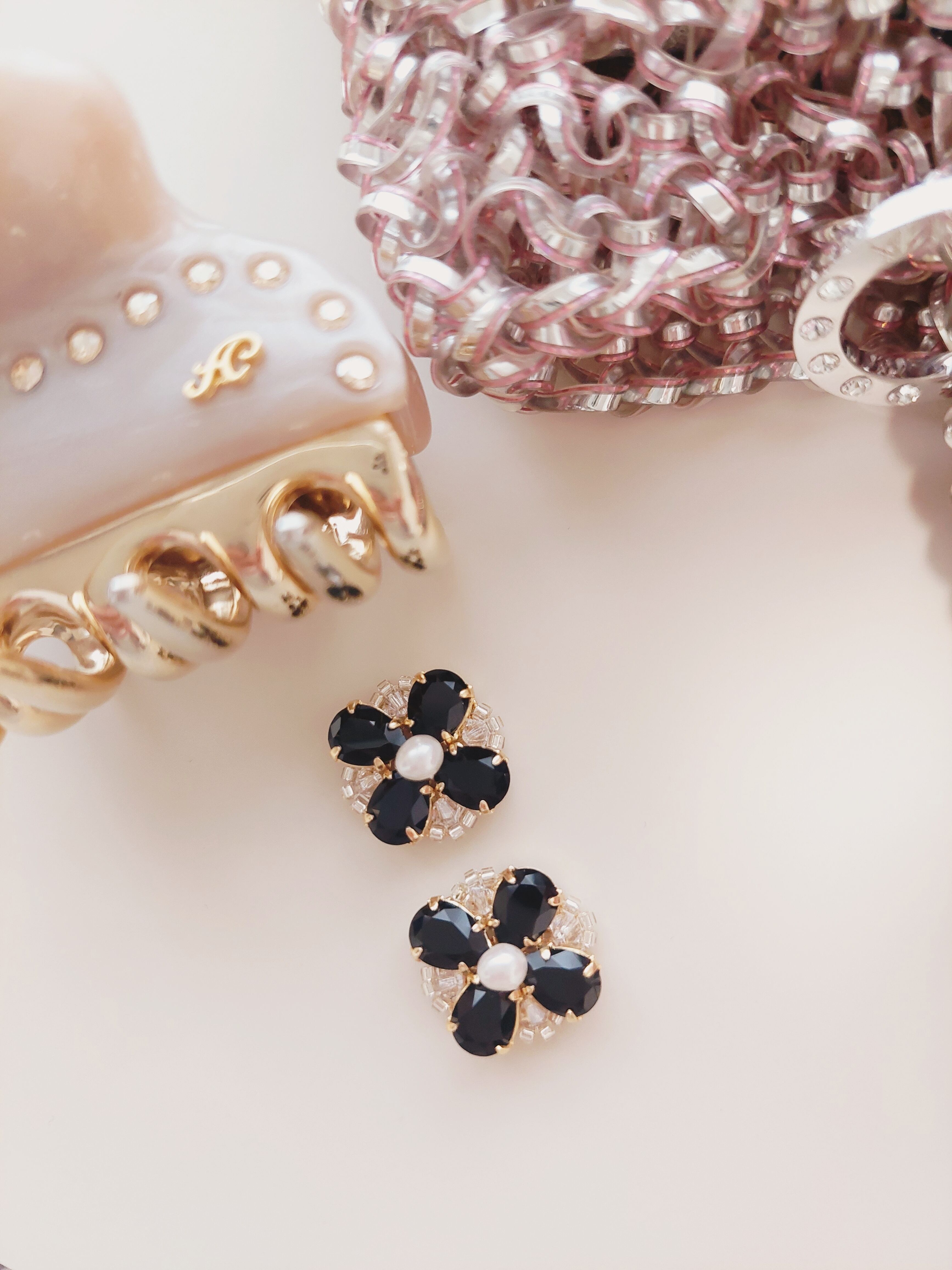 スワロフスキー製クリスタルカラーはジェットという艶の綺麗なブラックを使用しております。