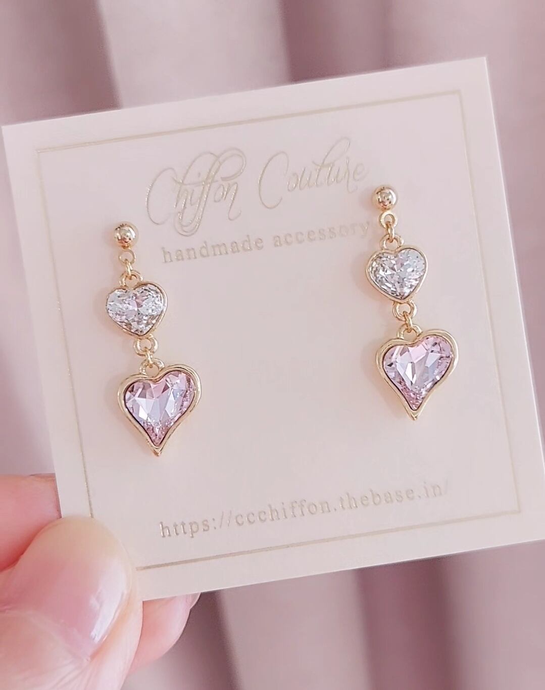形の違うハートを組み合わせて大人がつけられるミニサイズのハートモチーフピアス(イヤリング)をお作りしました。