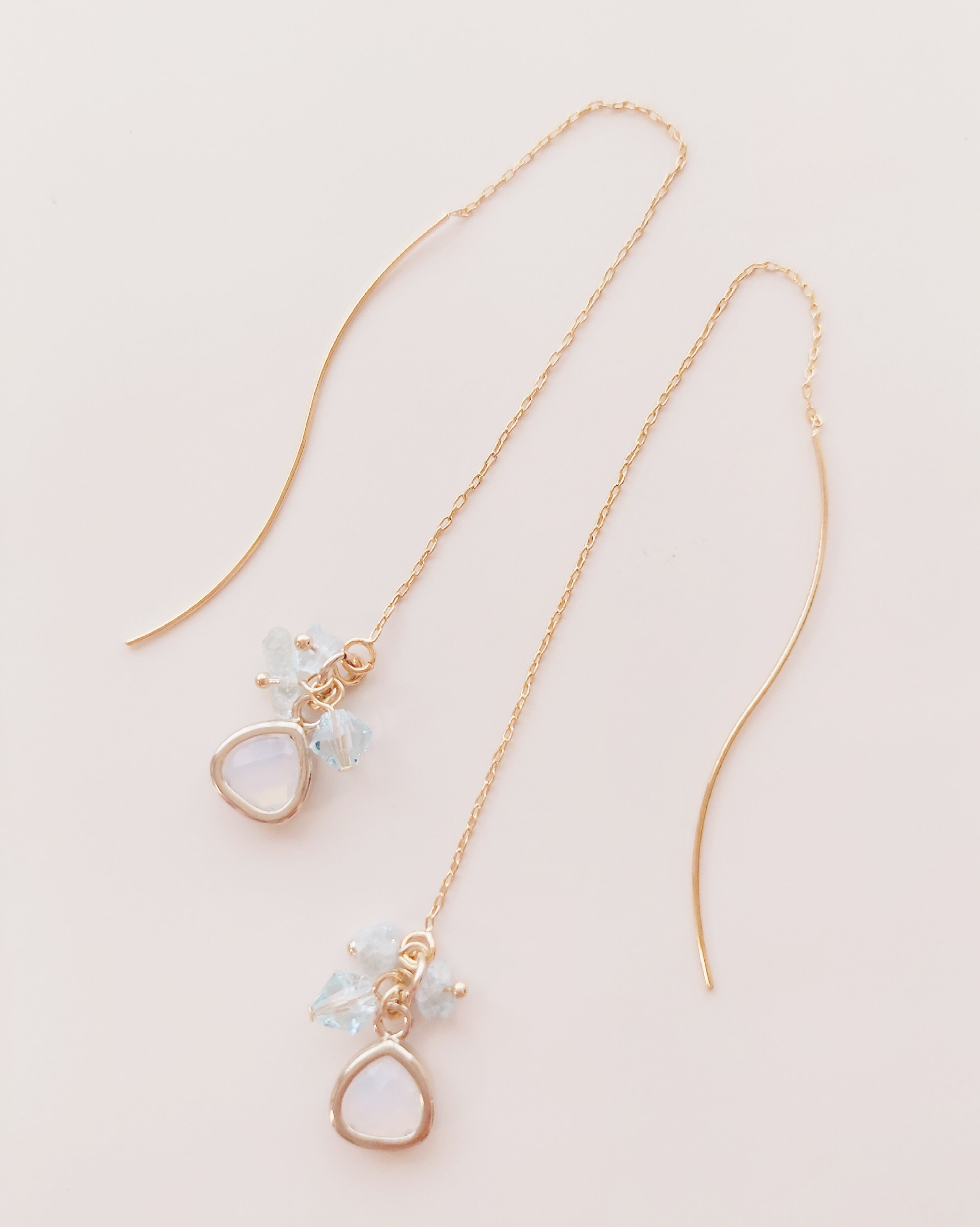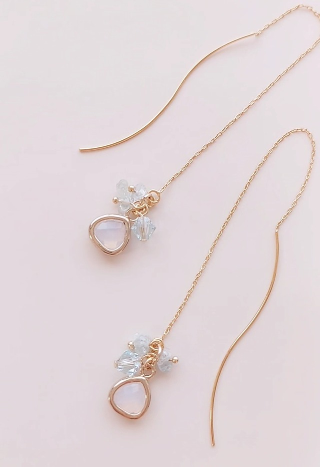 天然石アクアマリンとホワイトオパール、ライトアゾレのパーツを組み合わせて爽やかな印象に。