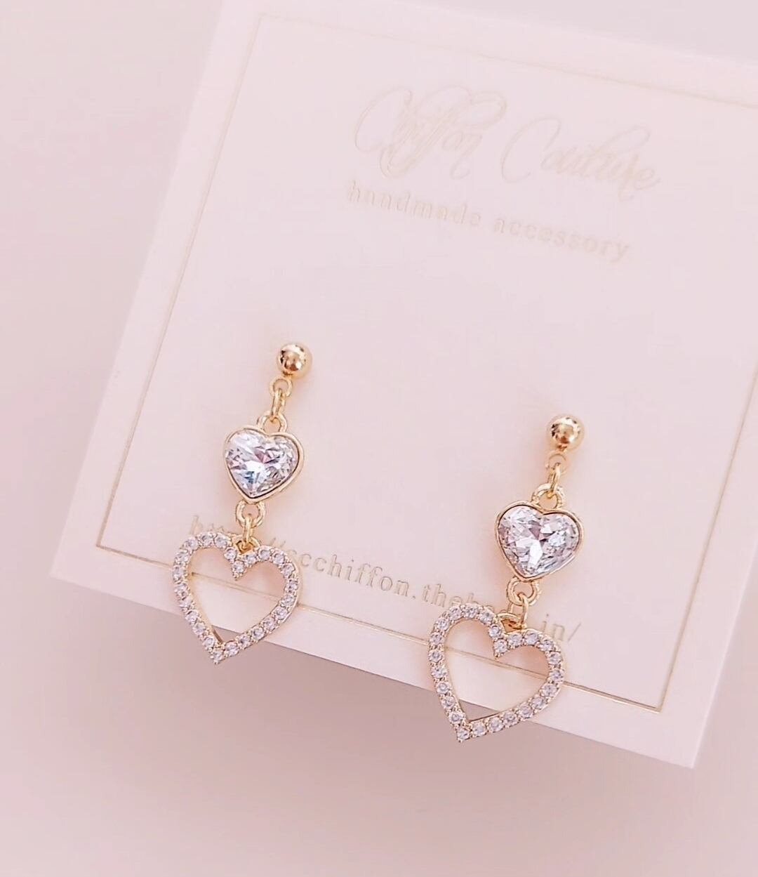 形の違うハートモチーフを組み合わせて大人がつけられるミニサイズのハートピアス(イヤリング)をお作りしました。