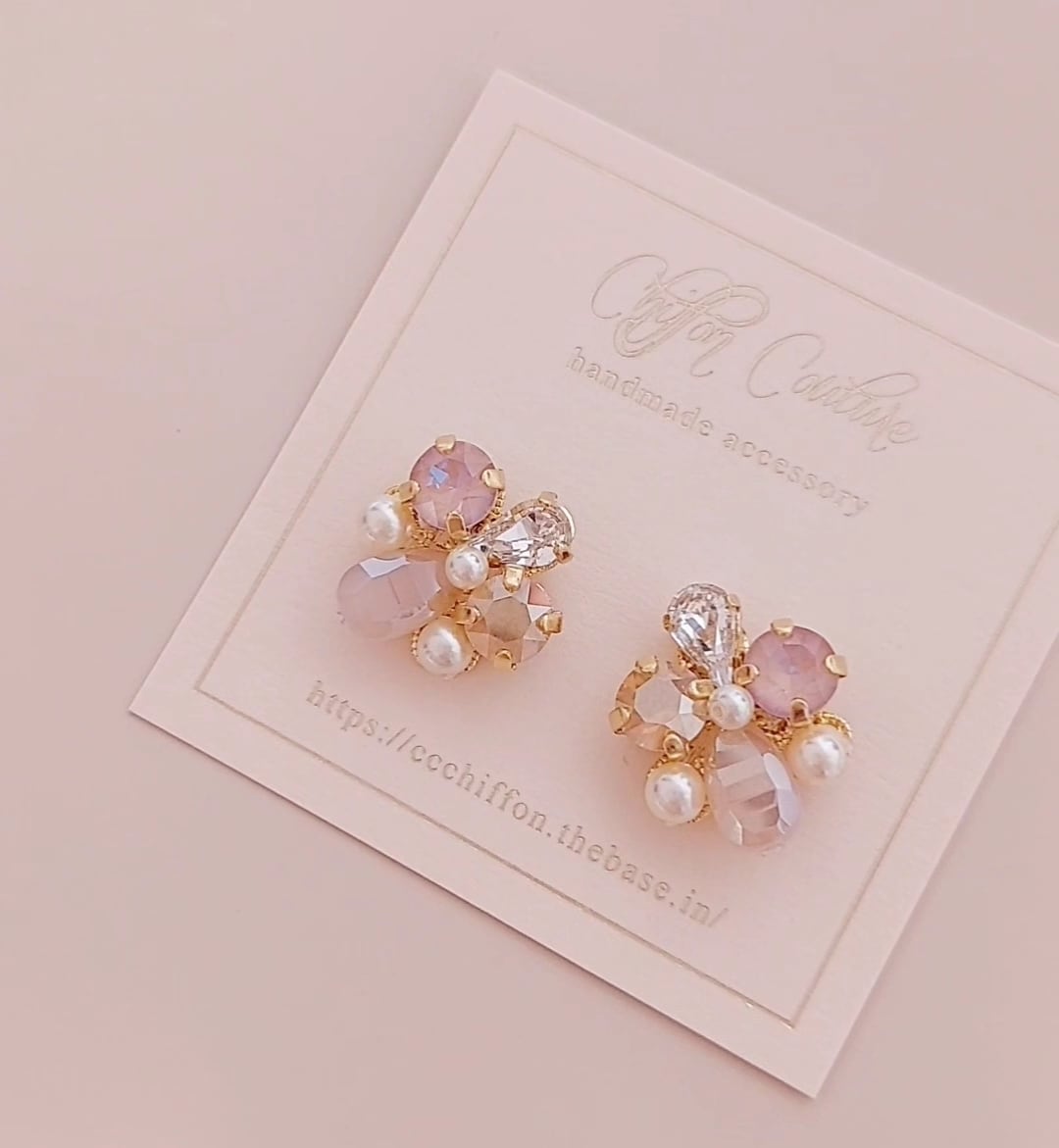 使用スワロフスキー製クリスタルはクリスタル、ダスティピンク、ホワイトオパールゴールデンシャドウ。