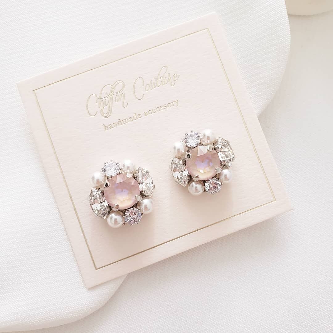 石座はシルバーカラーを使用し、スワロフスキーはダスティピンクとクリスタル、パールはホワイトを使用しております。