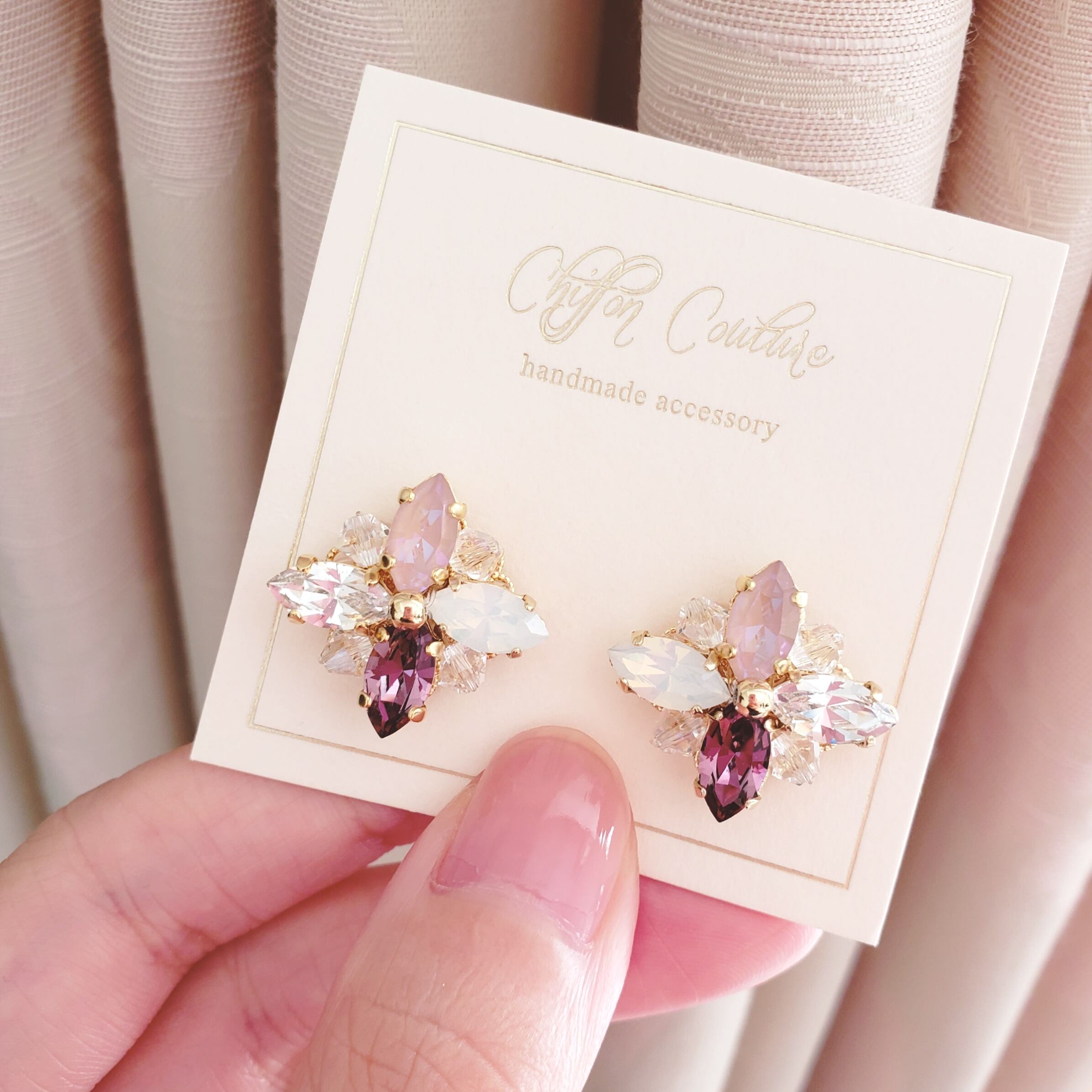 スワロフスキーはアイリス・ダスティピンク・ホワイトオパール・クリスタルを使用。