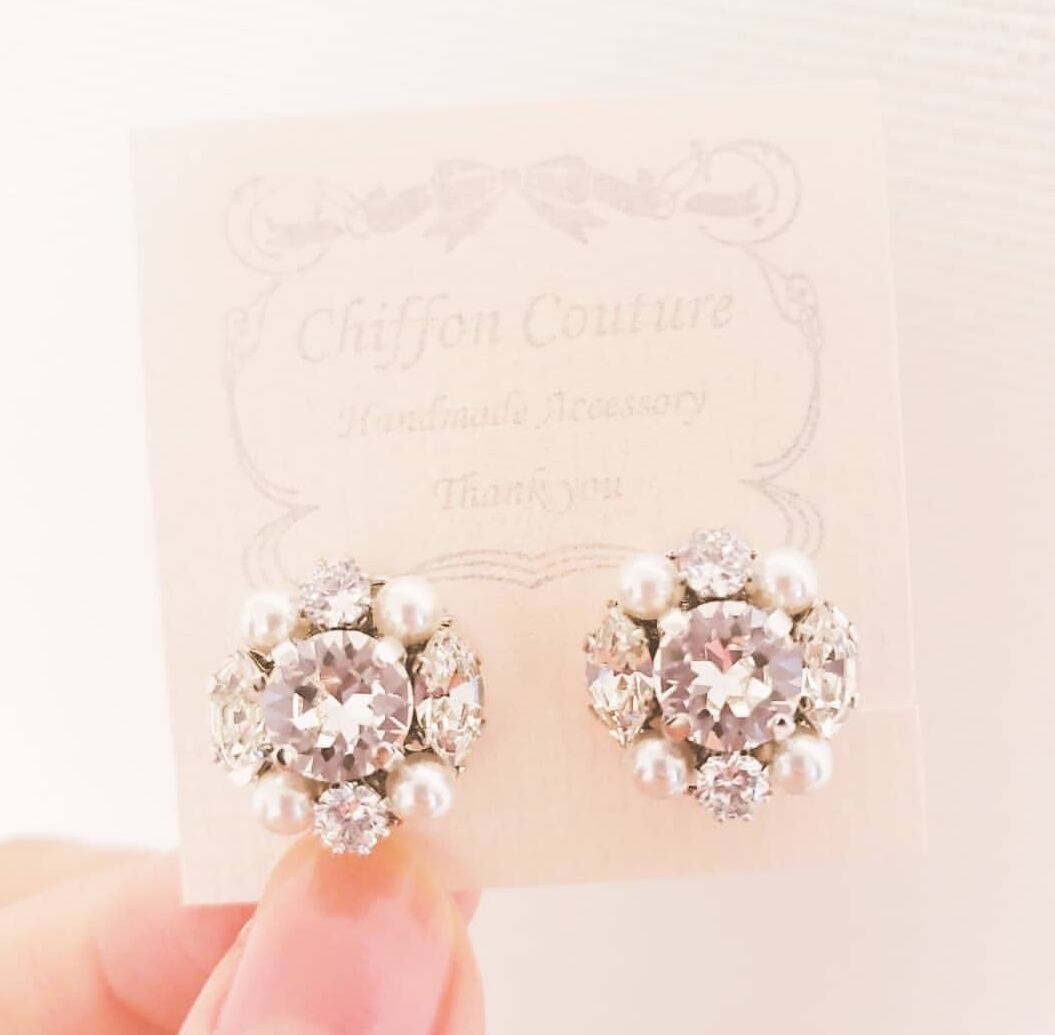 顔周りがパッと明るくなるクリスタルはどんなコーディネートにも合わせやすいのでひとつあると出番が多くなるはず☆