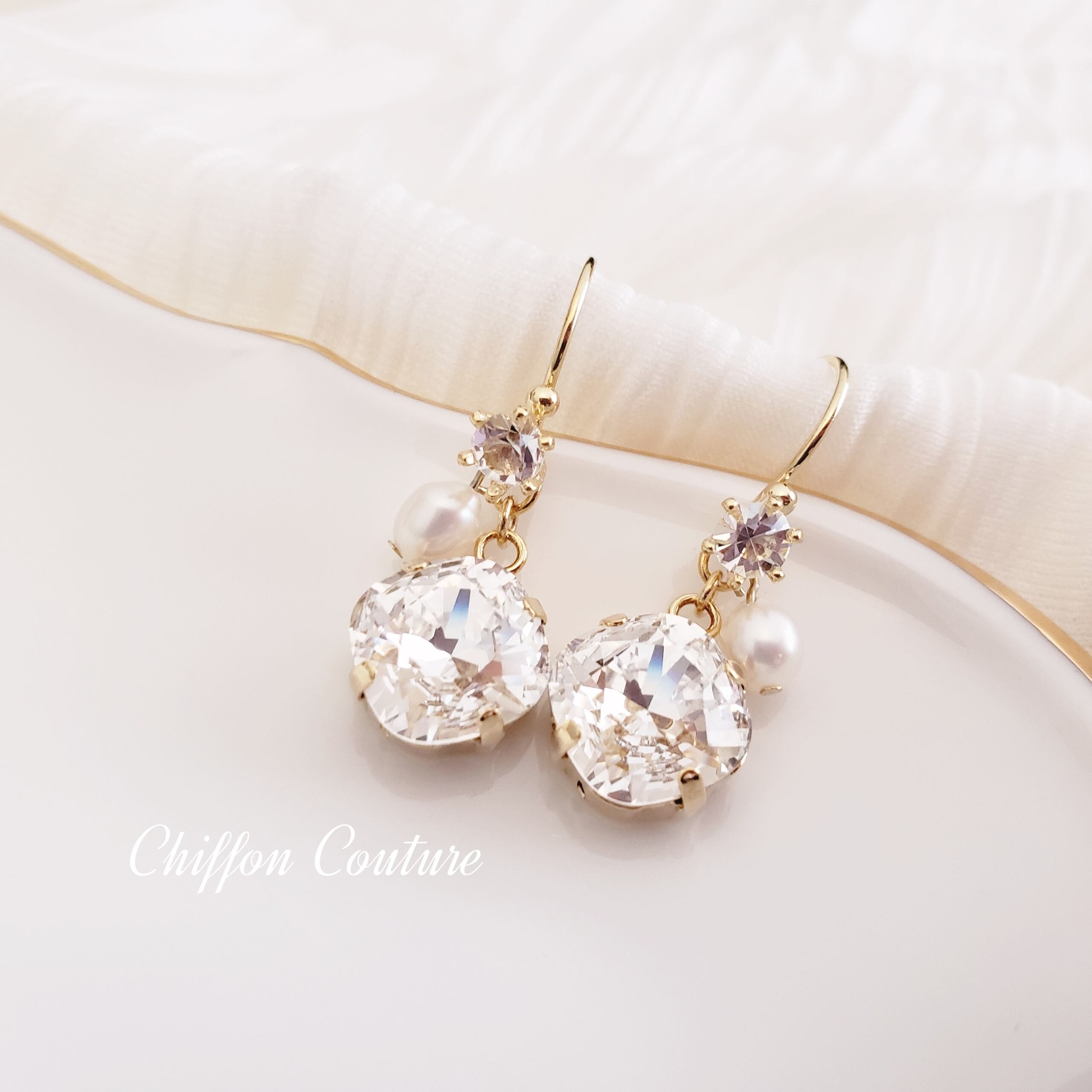 フックタイプのピアスにはクリスタルのモチーフを施しているものを使用しているので、程よい華やかさが可愛いです♪