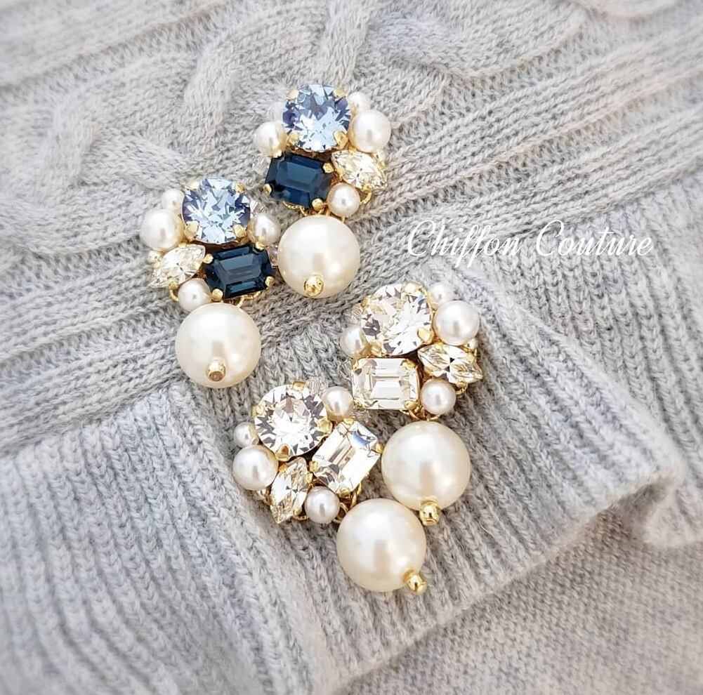 様々な形のスワロフスキーを合わせて大人の女性に似合うスワロフスキーピアス(イヤリング)です。