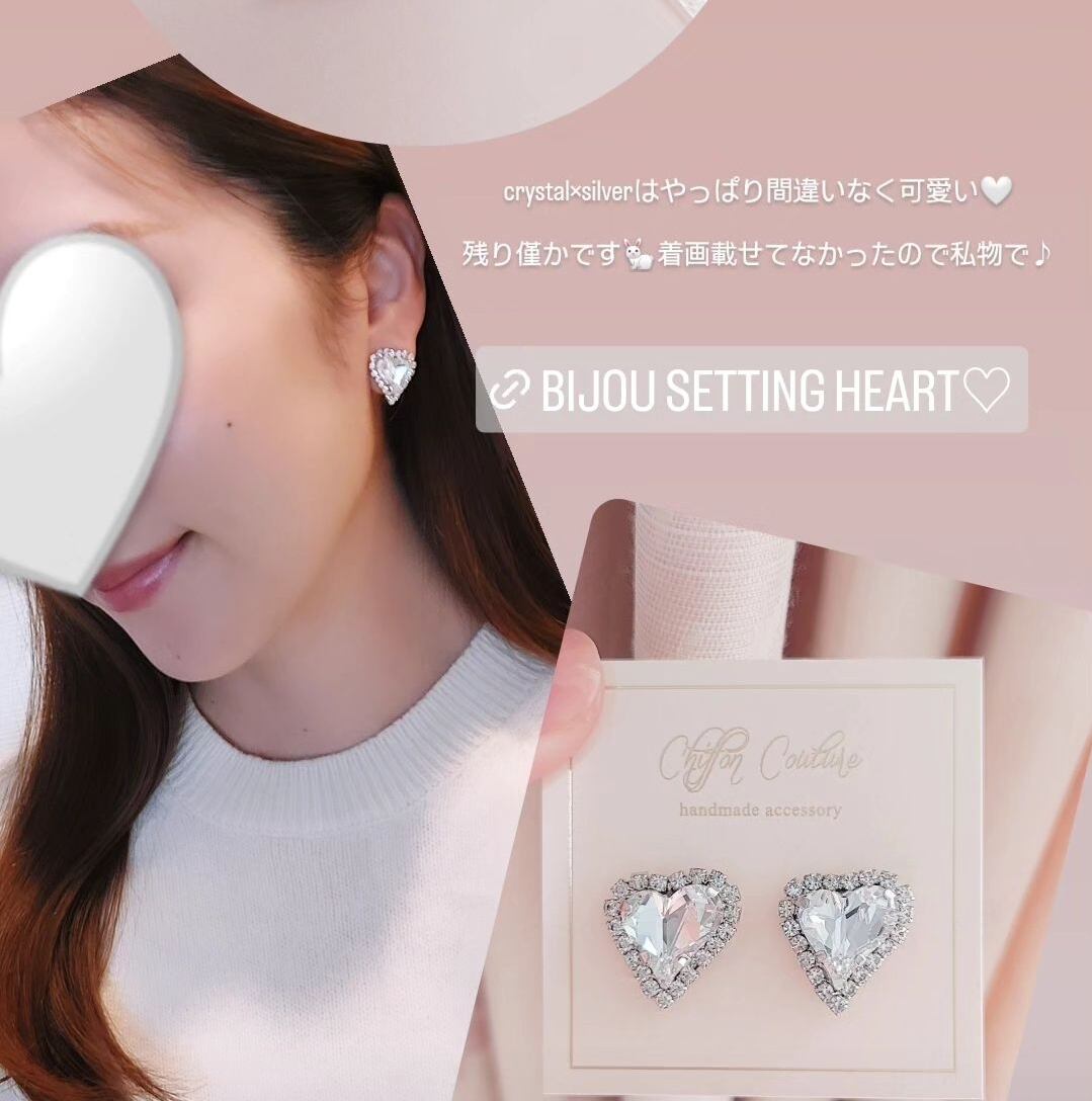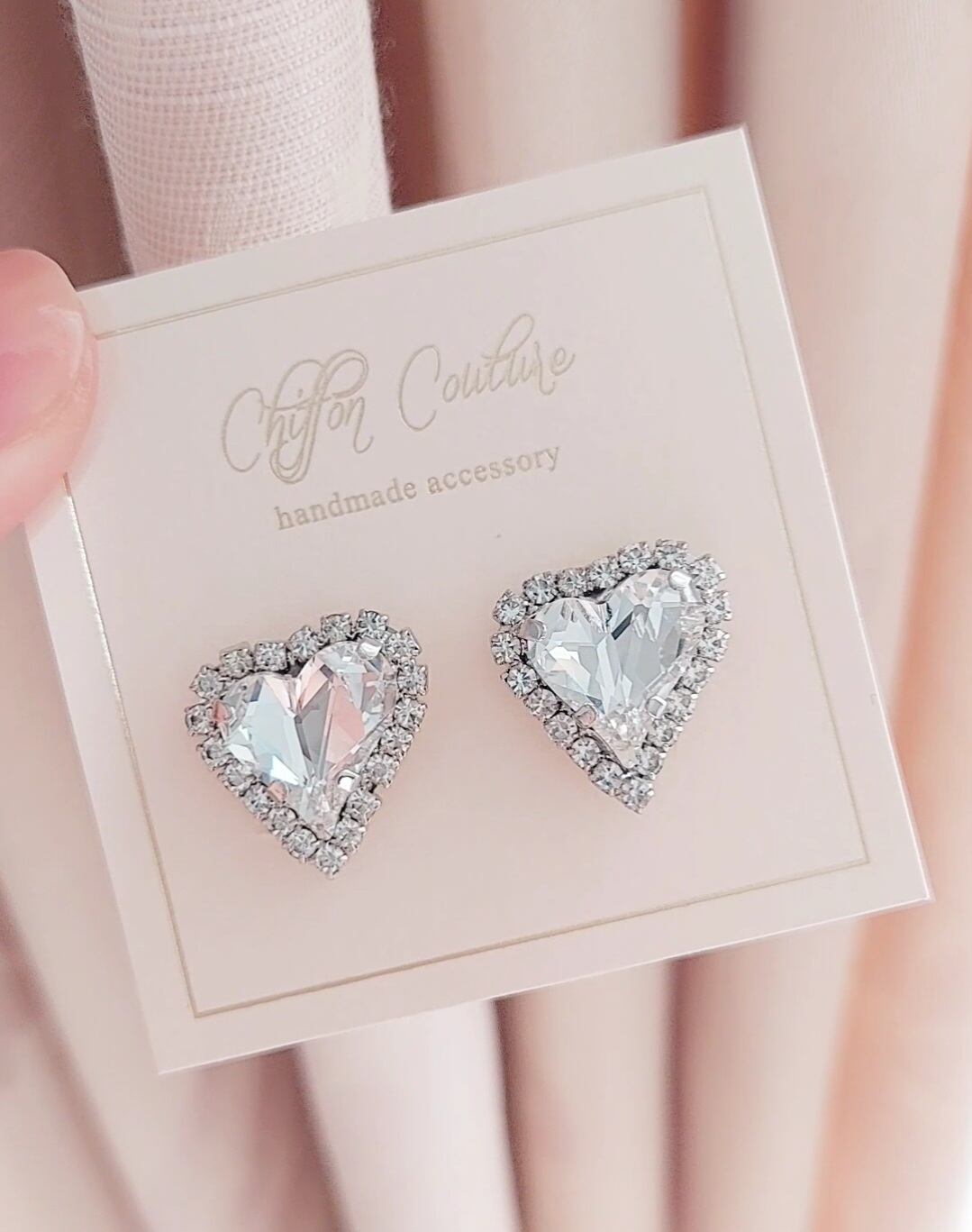 クリスタル×シルバーで王道な可愛さで大人が着けやすいハートは季節問わずコーディネートのポイントにしていただきたいデサイン♡