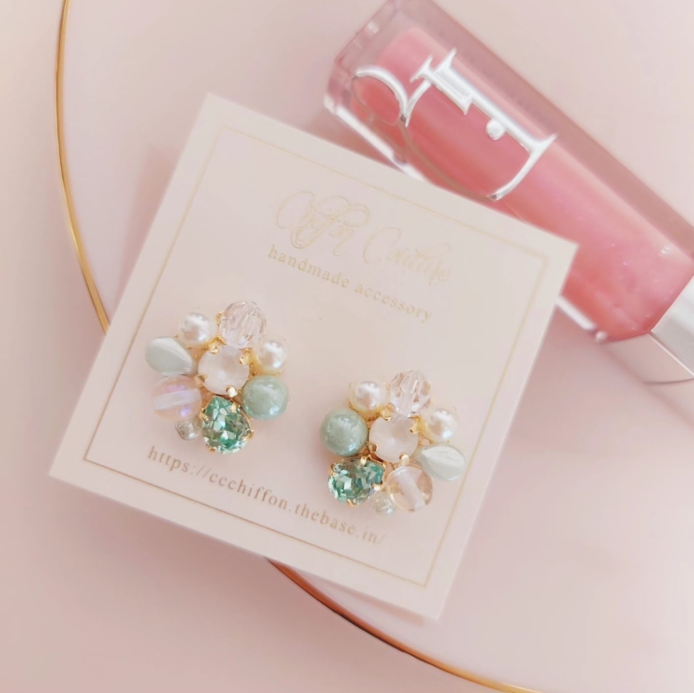 スワロフスキーはクリソライト・リネンホワイトなどを使用して爽やかな配色に♡