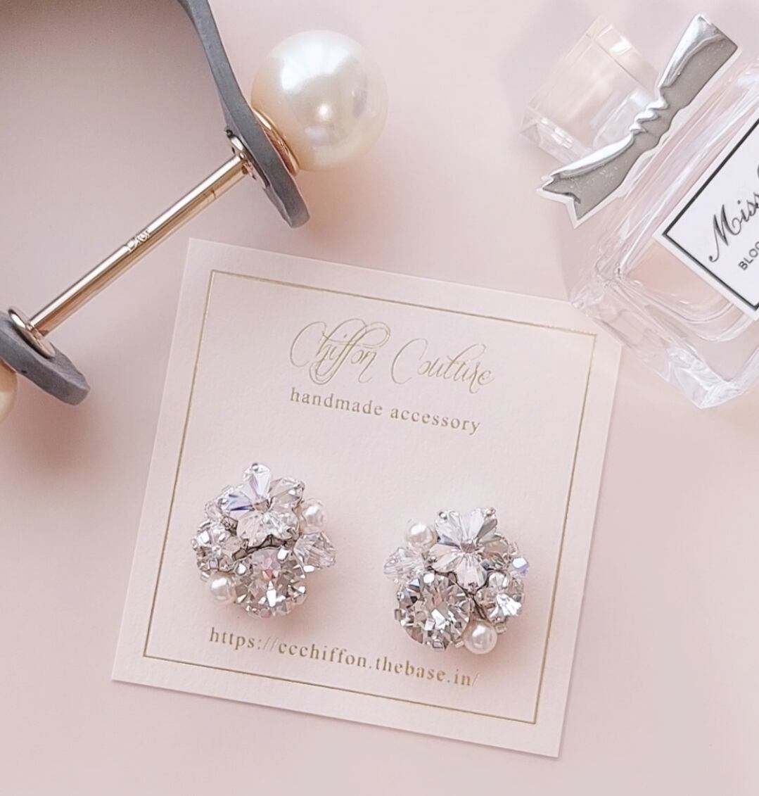 ブーケのような大小のフラワー型スワロフスキーがポイントの上品で可愛いデザインは季節を問わずお使いいただけます♡