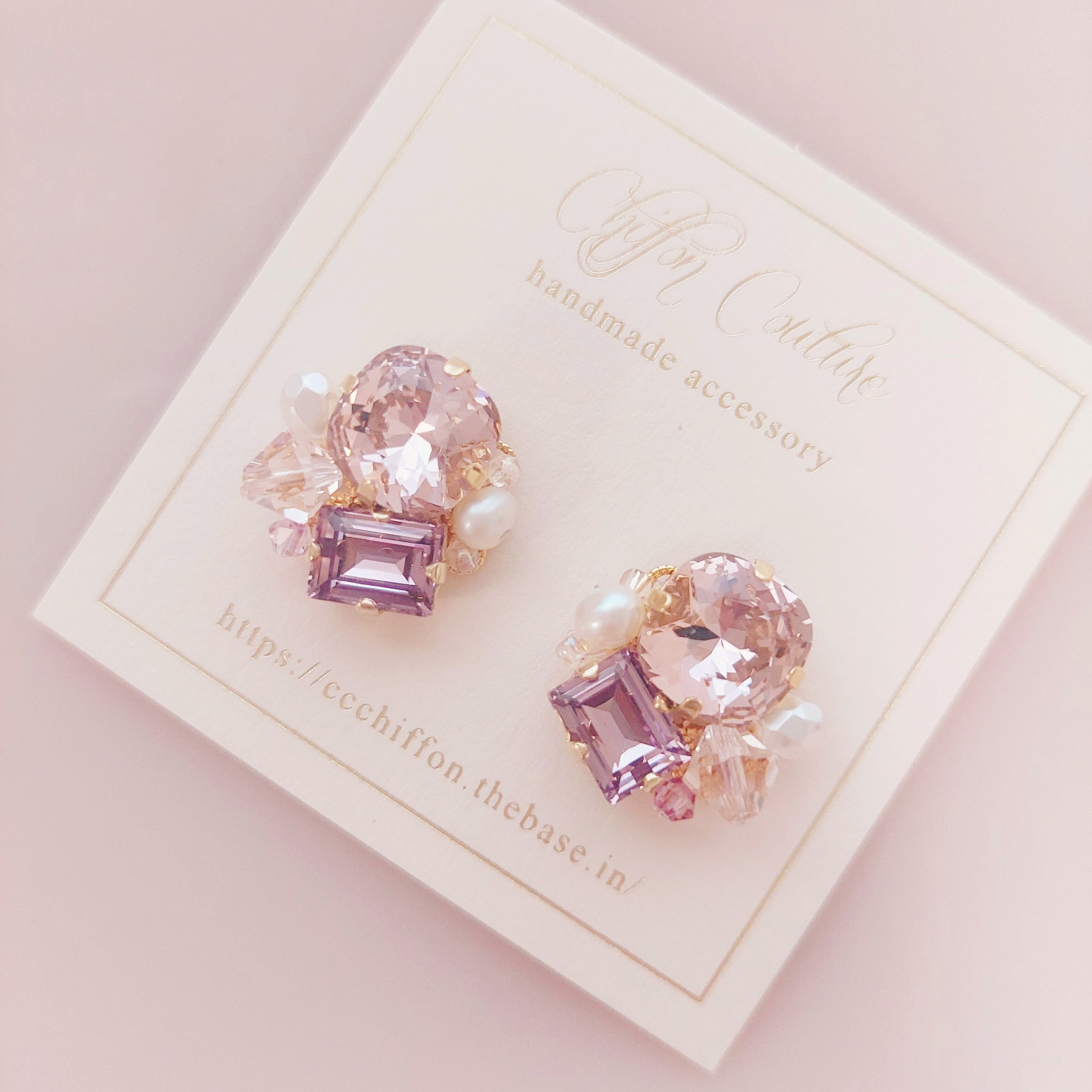 スワロフスキーはヴィンテージローズ、ライトアメジストで組み合わせることで優しいピンク系の色合いに♪︎